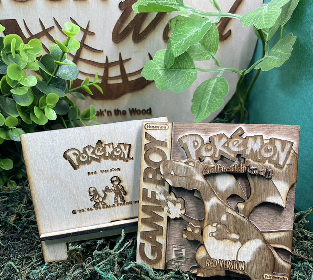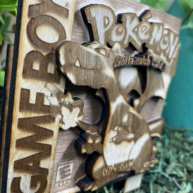 Décoration gameboy, Pokémon version rouge dracaufeu. En bois, contreplaqué de bouleau.
