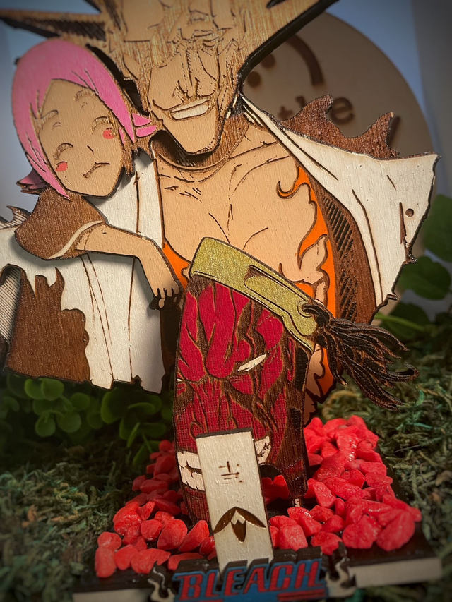 Figurine bleach, Zaraki Kenpachi en bois.