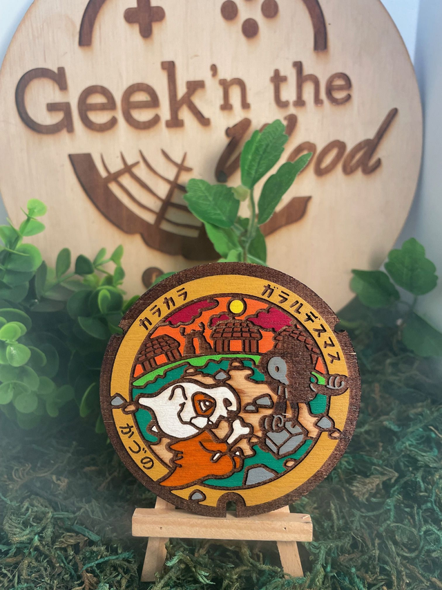 Plaque pokémon osselait. 9,5 cm de diamètre.